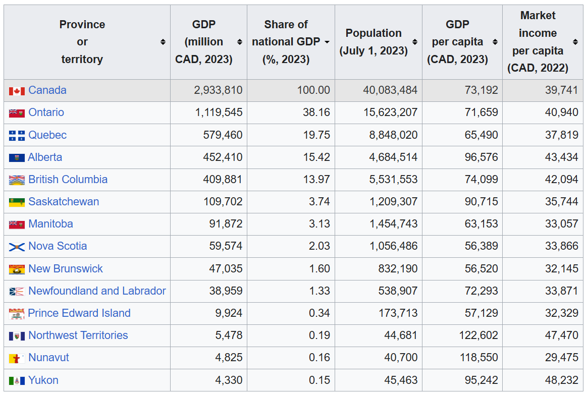 From the table above (source: https://en.wikipedia.org/wiki/Equalization_payments_in_Canada) you will see that Alberta receives no equalization payment and has not for a very long time. This is because the primary metric is how much tax revenue provinces are generating for themselves. High resource provinces generate a lot of tax revenue and therefore don't require federal funds to end up with the same per capita total tax revenue. From the graph below (source: https://en.wikipedia.org/wiki/List_of_Canadian_provinces_and_territories_by_gross_domestic_product) you will see that the equalization payments don't necessarily parallel to GDP per capita for provinces, because a strong contributor like Quebec with a much higher service economy is generating less tax revenue than a lower GDP contributor like Alberta that has a high resource economy: